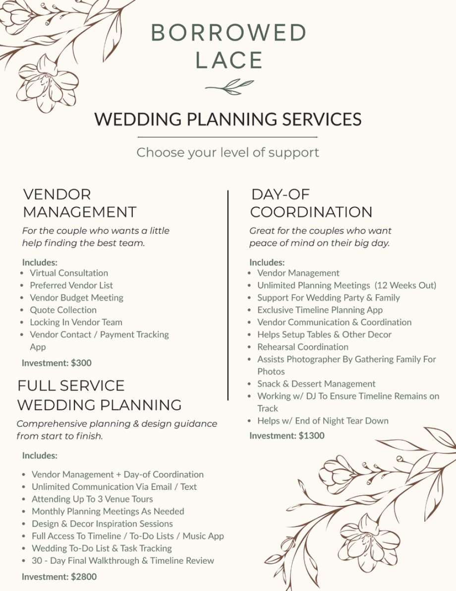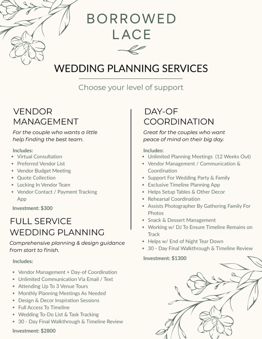 Take a moment to explore our different planning services. Please review each one carefully, as this will help you determine which service aligns best with your specific needs and preferences.